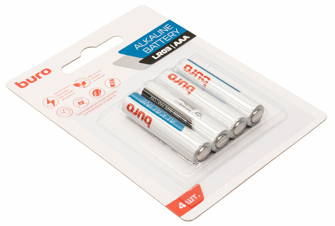 Батарея Buro Alkaline LR03 AAA (4шт/уп); щелочная; напряжение 1.5 В.