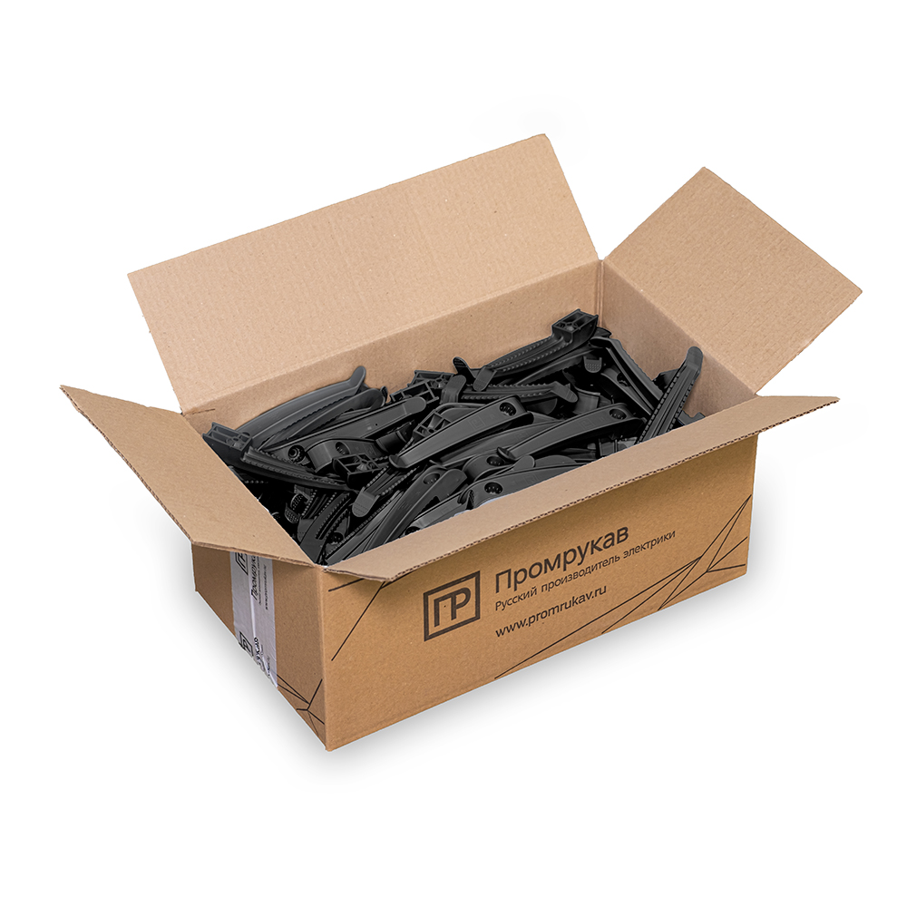 PR13.0491 держатель кабеля односторонний для прямого монтажа в гофроящике черный (200 шт/кор) Промрукав; пластик; УХЛ2; RAL 9005; -60..+60°C; 0,0134 кг.
