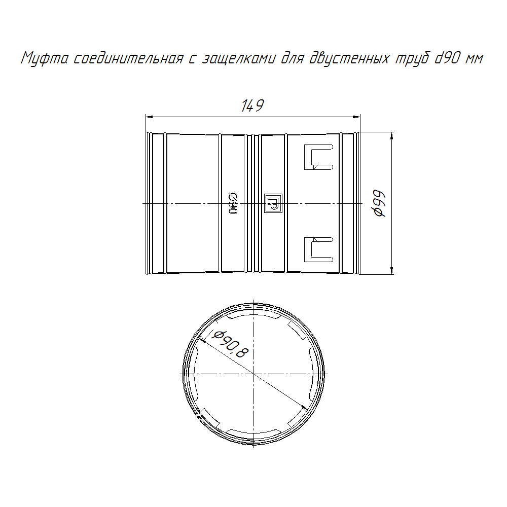 PR08.3103 муфта соединительная для двустенных труб d90 мм Промрукав; диаметр 90 мм; -55..90°C; RAL 9005; 0,08071 кг.