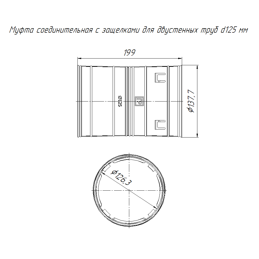 PR08.3100 муфта соединительная для двустенных труб d125 мм Промрукав; диаметр 125 мм; -55..90°C; RAL 9005; 0,1591 кг.