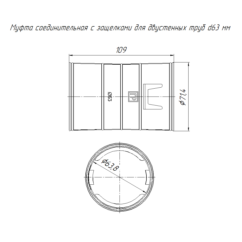 PR08.3109 муфта соединительная для двустенных труб d63 мм Промрукав; RAL 9005; диаметр 63 мм; -55..90°C; 0,04341 кг.