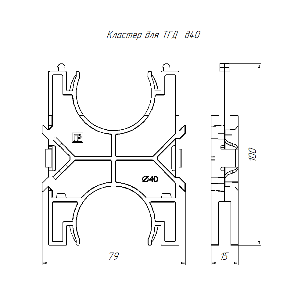 PR13.1128 кластер для двустенных труб d40 мм наборный, двухсторонний (1шт/уп) Промрукав; диаметр 40 мм; RAL 9005; -55..90°C; 0,02111 кг.