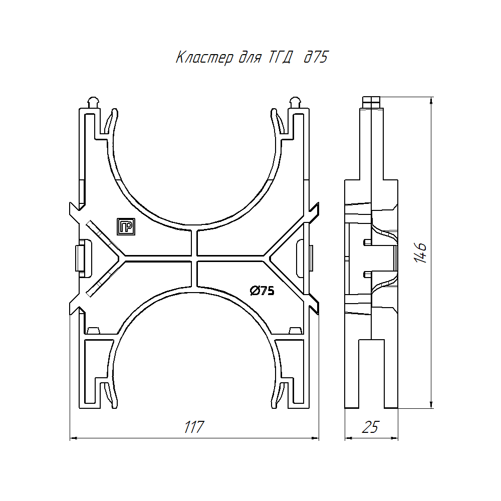 PR13.1135 кластер для двустенных труб d75 мм наборный, двухсторонний (1шт/уп) Промрукав; диаметр 75 мм; RAL 9005; -55..90°C; 0,05941 кг.