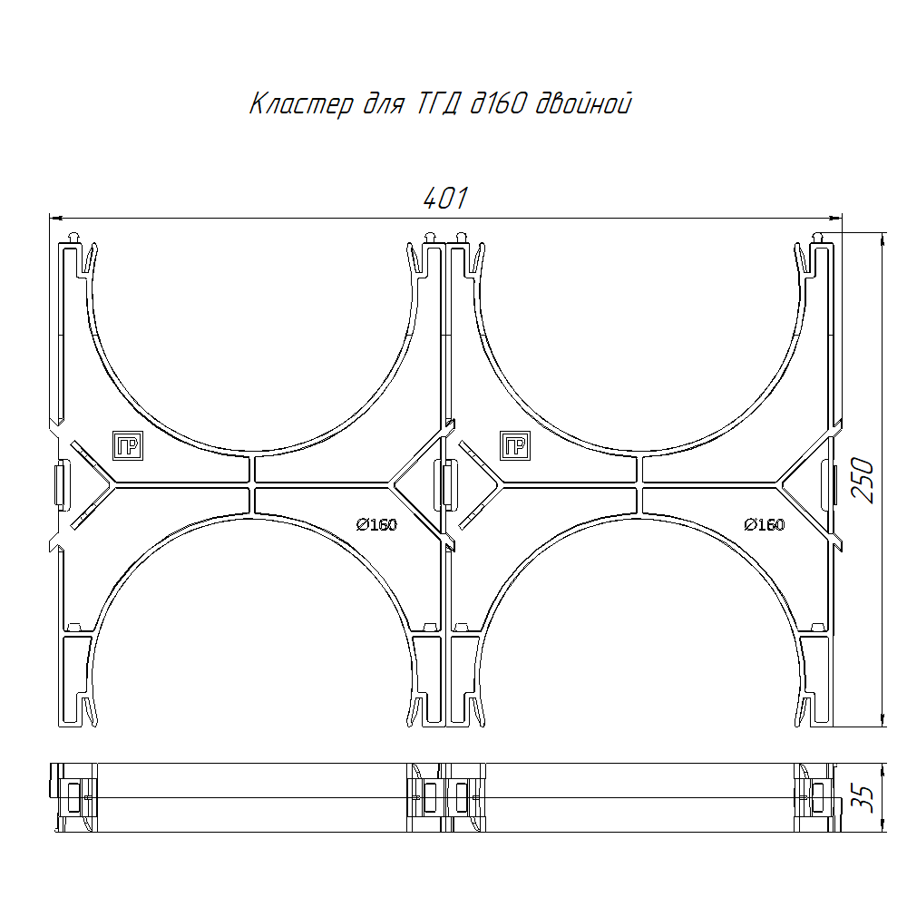 PR13.02573 кластер для двустенных труб d160 мм, двойной, двухсторонний (43 шт/кор) Промрукав; диаметр 160мм; RAL 9005; -55..90°C; 0,33097 кг.