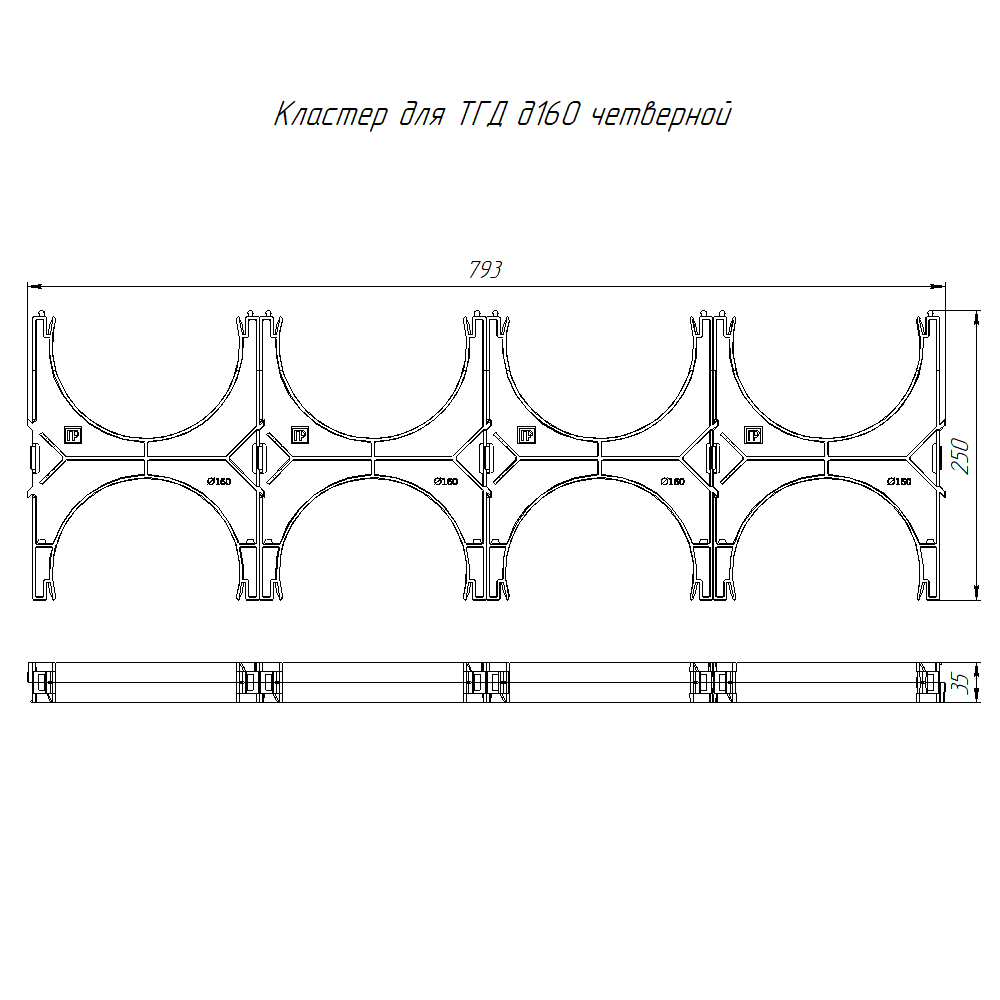 PR13.02593 кластер для двустенных труб d160 мм, четверной, двухсторонний (22 шт/кор) Промрукав; диаметр 160мм; RAL 9005; -55..90°C; 0,66084 кг.