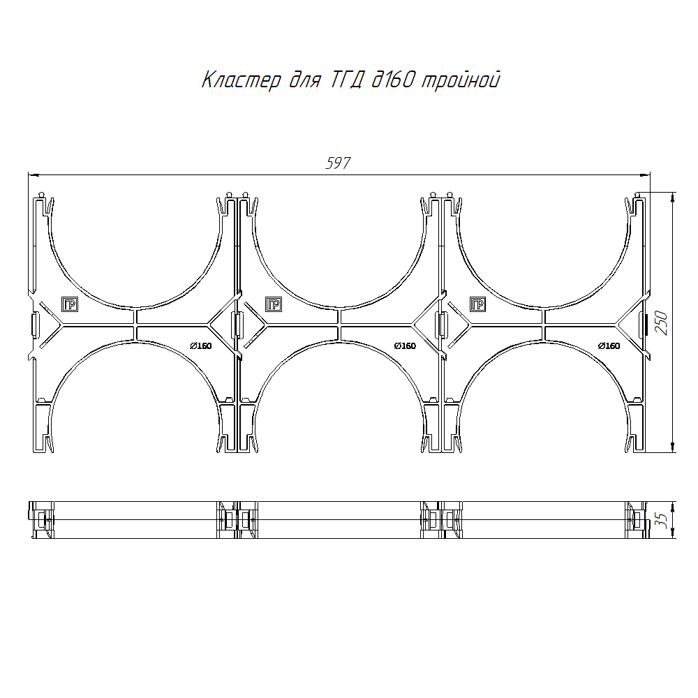PR13.02583 кластер для двустенных труб d160 мм, тройной, двухсторонний (35 шт/кор) Промрукав; диаметр 160мм; RAL 9005; -55..90°C; 0,48984 кг.