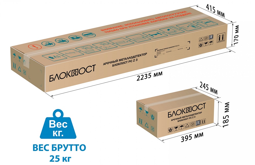 Габариты упаковки (мм) ДхШхВ: 2235х415х170