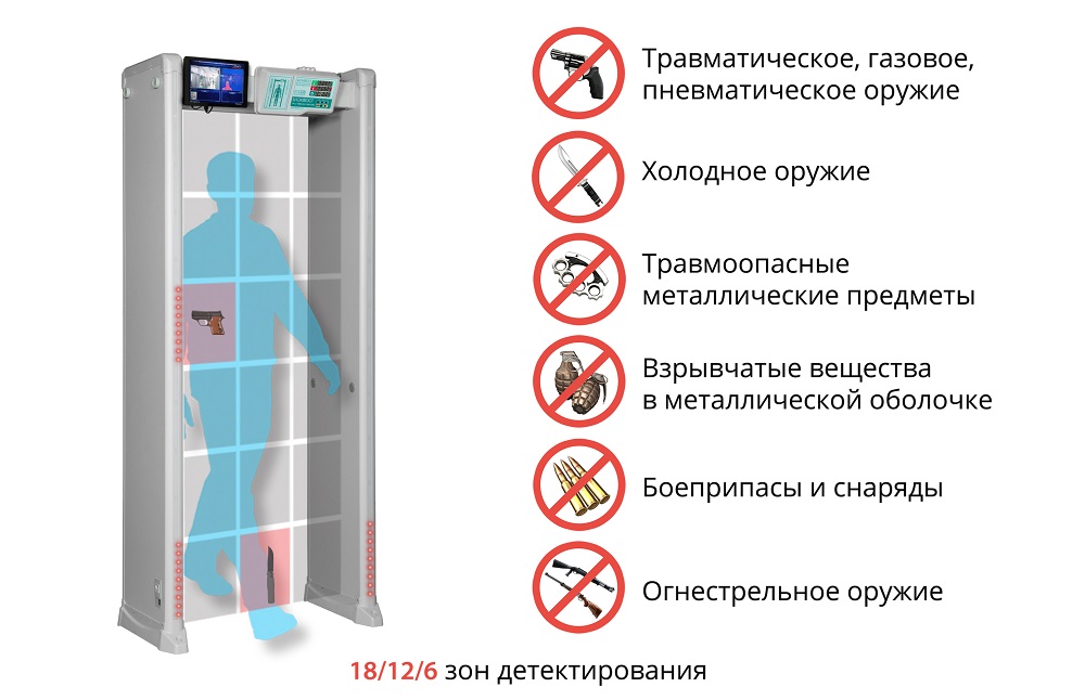 Доступный интерфейс блока управления, высокая степень безопасности, универсальная применимость, высокая чувствительность, широкий диапазон детектирования, нечувствительность к помехам, возможность эксплуатации в течение 24 часов в интеллектуальном режиме с выдачей одновременно звуковых и световых сигналов тревоги, высокое качество, эффективность и отличные технические характеристики – все эти параметры находятся на самом современном мировом уровне. Металлодетекторы БЛОКПОСТ PC Z 1800 M K с тепловизионной системой Delta 100 безвредны для человеческого организма. Используется магнитное поле низкой интенсивности, безопасное для людей с кардиостимуляторами и слуховыми аппаратами, а также для беременных женщин.