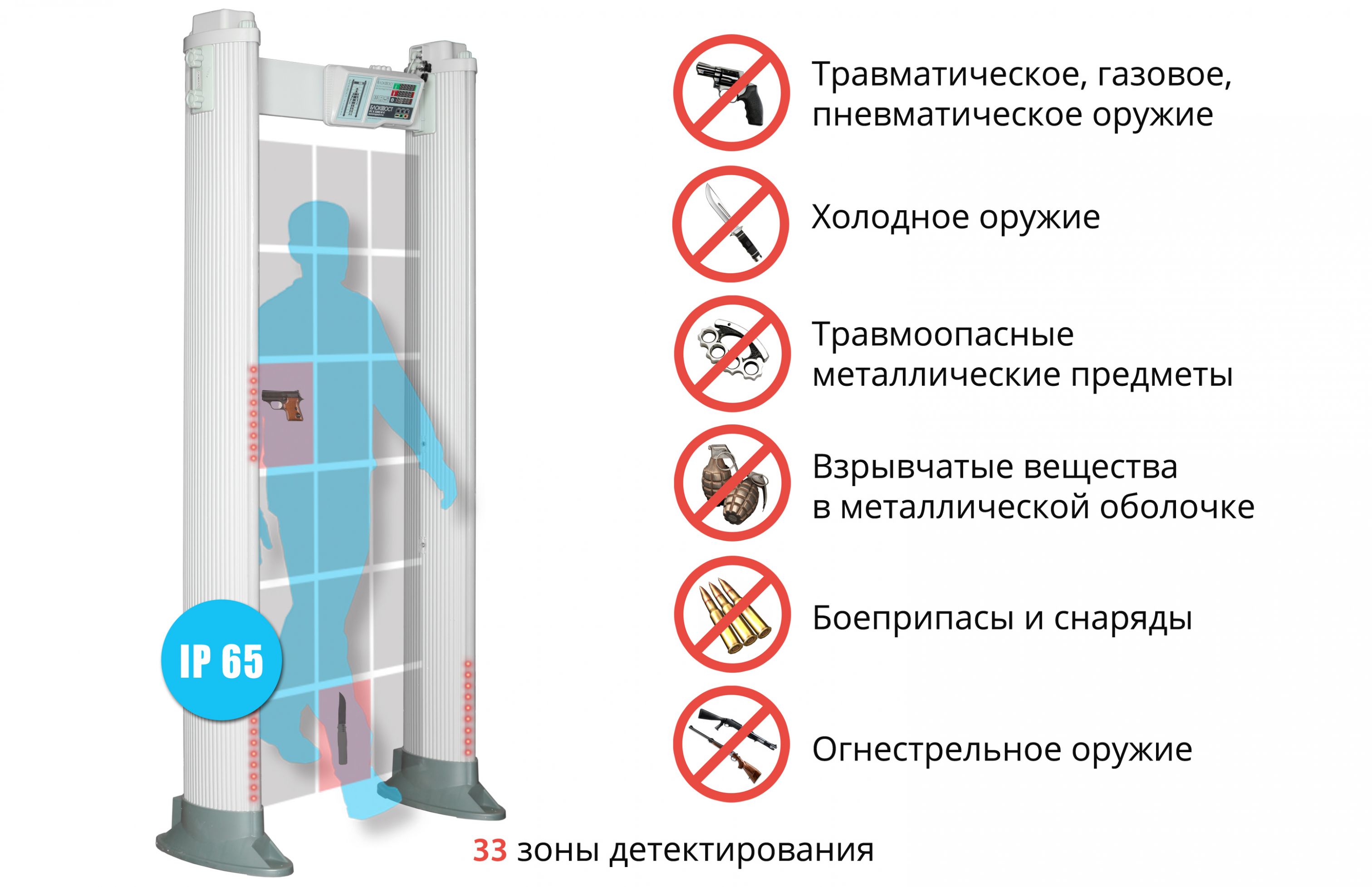 Во время прохода человека через металлодетектор с запрещенным к проносу предметом срабатывает световая и звуковая индикация, информация передается через проводное соединение на турникет (шлюзовую кабину, автоматическую дверь и т. д.), который блокирует дальнейшее движение человека. Если запрещенных к проносу предметов нет, то турникет разрешит доступ.