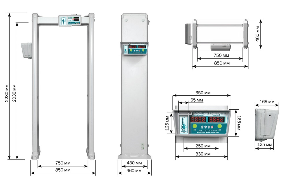 Блокпост РС И 4 арочный металлодетектор со встроенным термодатчиком; пропускная способность 30 чел/мин; от -20 до +55°С; 460х850х2230мм; 44кг.