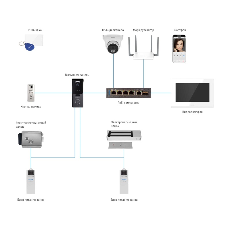 Важной особенностью вызывной панели является поддержка простого и универсального SIP протокола, который без каких-либо ограничений позволяет объединить в большую распределенную систему не только домофоны, но и IP-телефонию со всевозможными программными клиентами для компьютеров и мобильных устройств.