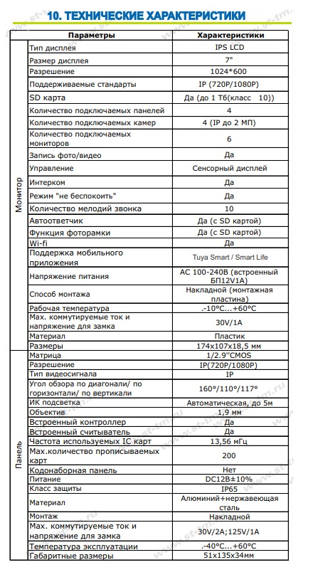 Домофон ST-MР300/7 серия «Земля» ЧЕРНЫЙ, (TS/SD/WF/IPC/1080P/IP/110°/IC) КОМПЛЕКТ, состоящий из панели и монитора, предназначен для организации домофонной аудио и видео системы по по протоколу TCP/IP, позволяя осуществлять голосовую и видеосвязь, Тип дисплея (М): IPS LCD Размер дисплея (М): 7" Разрешение (М): 1024*600 Поддерживаемые стандарты (М): IP (720P/1080P) SD карта (М): Да (до 1 Тб(класс 10)) Количество подключаемых панелей (М): 4 Количество подключаемых камер (М): 4 (IP до 2 МП) Количество подключаемых мониторов (М): 6 Запись фото/видео (М): Да Управление (М): Сенсорный дисплей Интерком (М): Да Режим "не беспокоить" (М): Да Количество мелодий звонка (М): 10 Автоответчик (М): Да (с SD картой) Функция фоторамки (М): Да (с SD картой) Wi-fi (М): Да Функция распознавания лиц (М) пикт.: Да Поддержка мобильного приложения (М): Tuya Smart / Smart Life Напряжение питания (М): АС 100-240В (встроенный БП12V1A) Способ монтажа (М): Накладной (монтажная пластина) Рабочая температура (М): -10°С...+60°С Мах. коммутируемые ток и напряжение для замка (М): 30V/1A Материал (М): Пластик Размеры (М): 174х107х18,5 мм Матрица (П): 1/2.9''CMOS Разрешение (П): IP(720P/1080P) Тип видеосигнала (П): IP Угол обзора по диагонали/ по горизонтали/ по вертикали (П): 160°/110°/117° ИК подсветка (П): Автоматическая, до 5м Объектив (П): 1,9 мм Встроенный контроллер (П): Да Встроенный считыватель (П): Да Частота используемых IC карт (П): 13,56 мГц Max.количество прописываемых карт (П): 200 Кодонаборная панель (П): Нет Питание (П): DС12В±10% Класс защиты (П): IP65 Материал (П): Алюминий+нержавеющая сталь Монтаж (П): Накладной Мах. коммутируемые ток и напряжение для замка (П): 30V/2A125V/1A Температура эксплуатации (П): -40°С...+60°С Габаритные размеры (П): 51х135х34мм Комплектность: Монитор видеодомофона с кабелем питания 220В, крепежным комплектом и кронштейном для установки соединительный кабель (2 контакта) - 3 шт вызывная панель видеодомофона c кабелем для подключения к монитору и замку кронштейн для поворота панели на 30° монтажная пластина IC карта - 5 шт монтажный комплект для крепления на стену паспорт и упаковочная коробка.