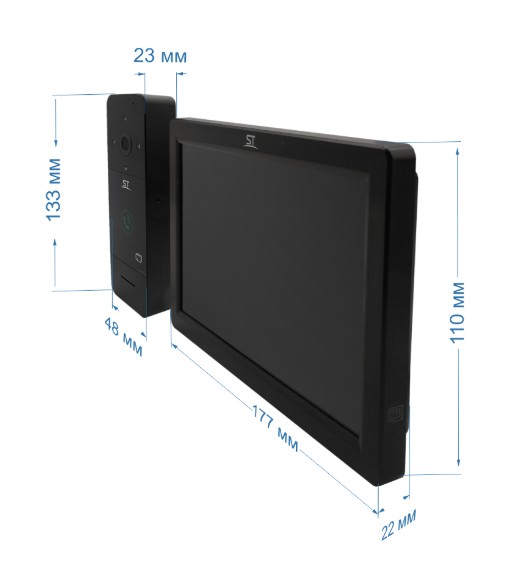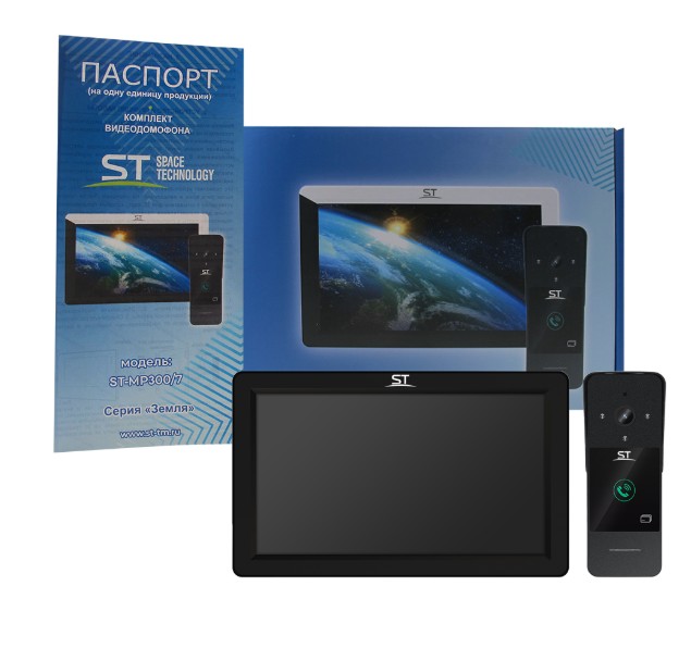 ST-MР300/7 серия «Земля» ЧЕРНЫЙ комплект IP-видеодомофона Space Technology; IP монитор, сенсорный экран IPS LCD 7"(1024х600); IP 2Мp, подключение: до 4 вызывных панелей, 4 камер (IP до 2 МП), 6 мониторов; интерком. 100-240В АС; -10°С...+60°С; максимальный коммутируемые ток и напряжение для замка 30В/1A; корпус пластик; 174х107х18,5 мм; IP вызывная панель; матрица 1/2.9''CMOS; IP 2Mp; угол обзора 110°(Г)/117°(В); ИК подсветка до 5м; объектив 1,9 мм; встроенный контроллер до 200 карт; считыватель IC карт(13,56 мГц); 12±10% В DC; IP65; корпус алюминий+нержавеющая сталь; монтаж накладной; максимальный коммутируемые ток и напряжение для замка 30В/2A; -40°С...+60°С; 51х135х34 мм.