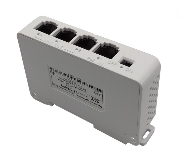 Приемопередатчик ST-VBP3 (версия 2), Удлинитель сигнала по UTP кабелю. Предназначен для приема и последующей передачи данных по проводным UTP линиям связи 5-й и 6-й категории, Порты подключения.Вход: разъем RJ-45 (PoE + Данные) -1 шт, Порты подключения.Выход: разъем RJ-45 (PoE + Данные) – 3 шт, Скорость соединения: 10/100 Мбит/с, Макс. пропускная способность: 100Мбит/с каждый порт, Сетевые стандарты: IEEE 802.3, IEEE 802.3u, IEEE802.3af/at, Потребляемая мощность: 1,2 Вт, Требование к кабелю: 8-жильный кабель категории 5 и выше, Температура эксплуатации: От -45°С до 60°С, Степень защиты: IP54, Тип крепления: DIN-рейка тип "OMEGA", Рабочая влажность: От 5% до 95% (без конденсата), Габаритные размеры ИП: 85мм*58мм*23мм.
