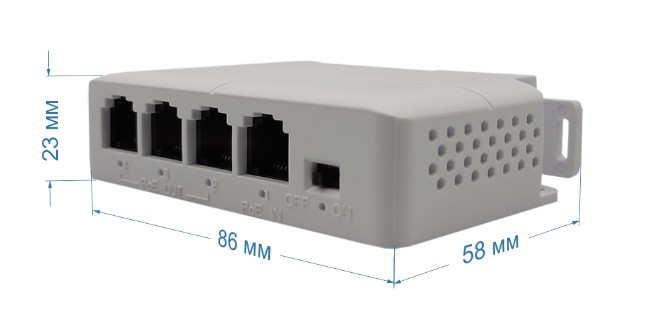 Параметры портов входа/выхода: Вход (PoE IN): PoE 802.3 af/at 30 Вт.Используемые контакты 1,2(+) 3,6(-) и 4,5(+) 7,8(-) Выход (1,2,3): PoE 802.3 af/at 8 Вт(каждый порт).Используемые контакты 1,2(+) 3,6(-).