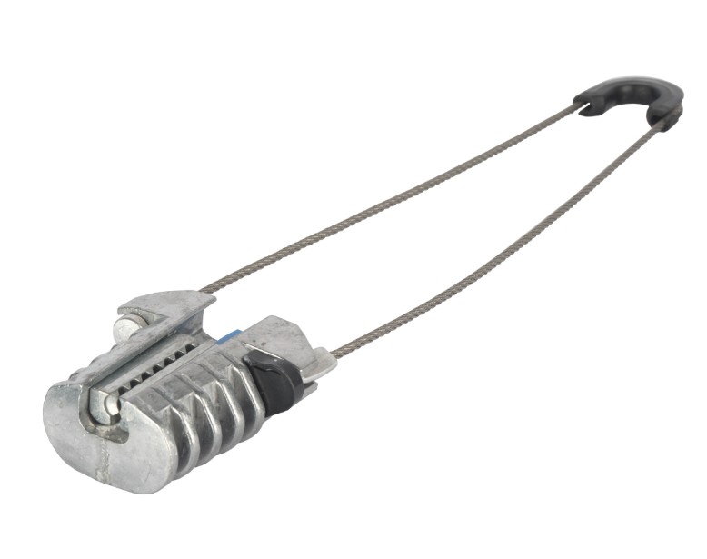 Анкерные зажимы предназначены для крепления и удержания в натянутом состоянии оптического кабеля с внешним силовым элементом типа "8" на опорах воздушных линий электропередачи, связи, городского электрохозяйства (уличного освещения, наземного электротранспорта), элементов зданий и сооружений при длине пролетов до 100 метров. Зажим анкерный натяжной NMF-AL-TCA-S-5 состоит из корпуса, сделанного из высокопрочного полимера и сплава алюминия, а также клиньев с зубьями, выполненных из сплава цинка. Зажим предназначен для крепления кабеля или стального нержавеющего троса диаметром до 7мм. Данный зажим является усиленным, и выдерживает нагрузку до 5 кН.