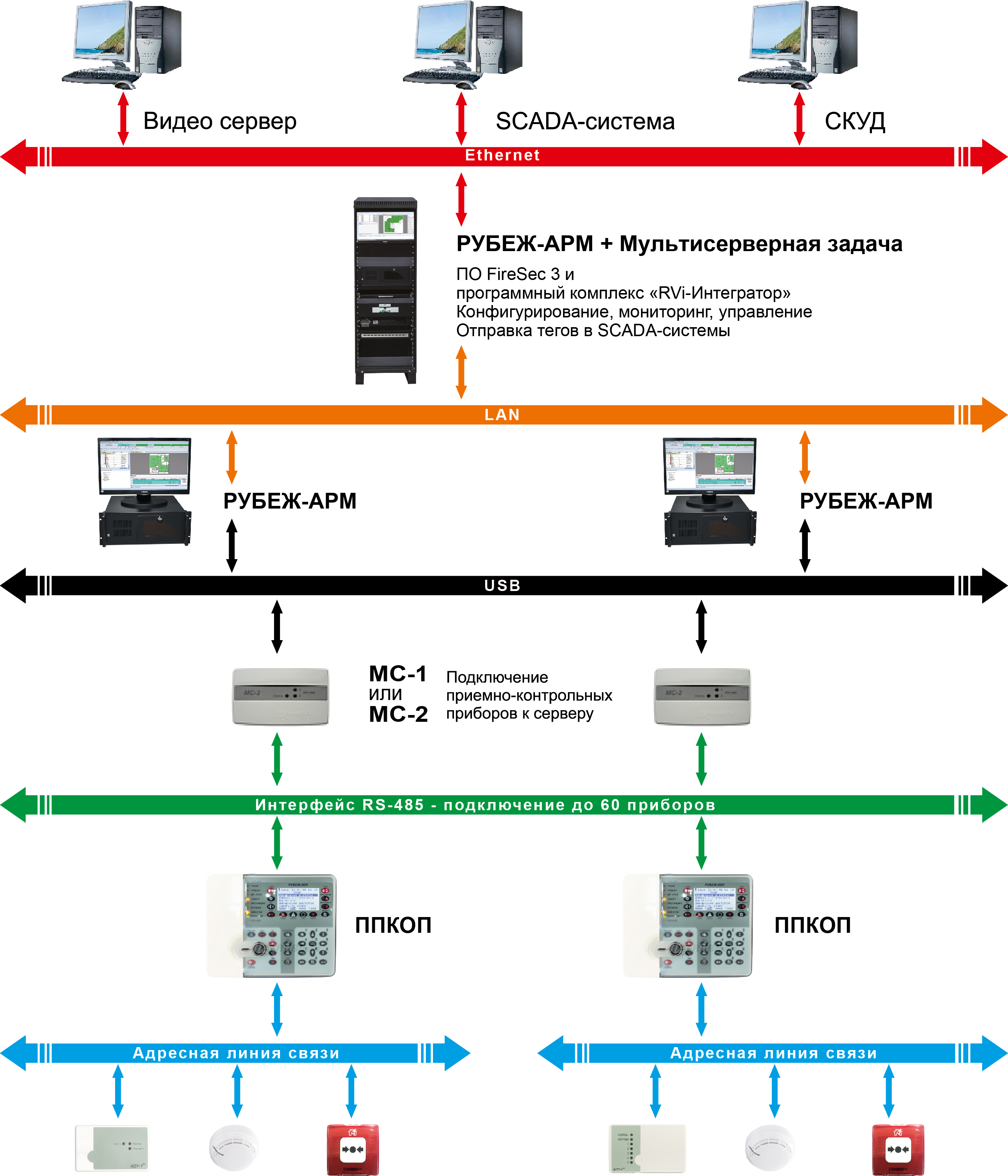 блок системный – в зависимости от исполнения Рубеж-АРМ имеет возможность контроля и управления от 1 до 60 приемно-контрольных приборов тм Рубеж;