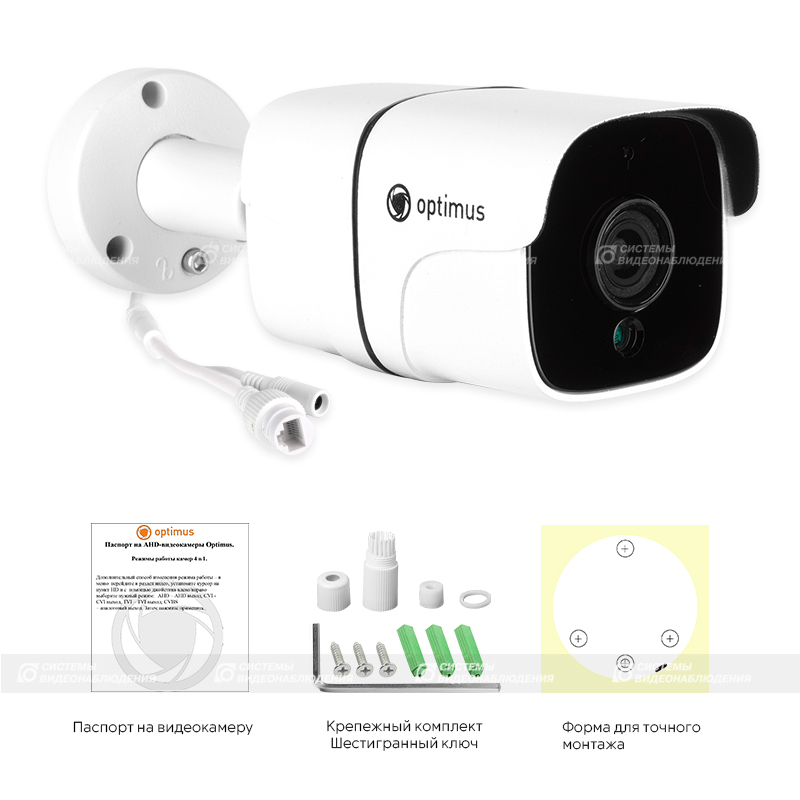 Оборудована фиксированным объективом 2,8 мм, встроенным ИК-фильтром.