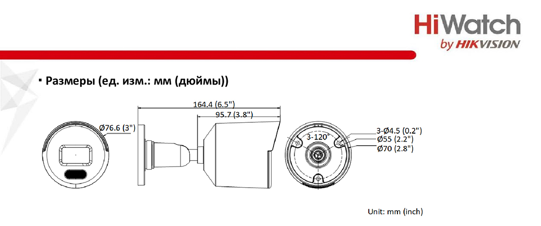 Размер камеры: Ø 76.6 × 164.4 мм (Ø 3 × 6.5″)