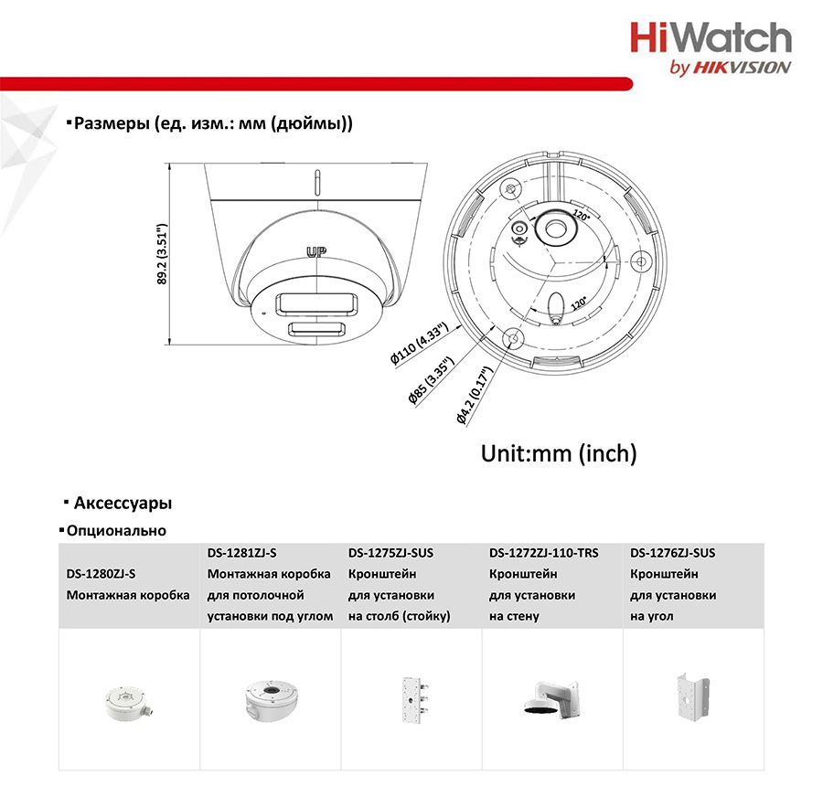 Размеры: Ø 110 × 89.2 мм (Ø 4.3 × 3.5″)