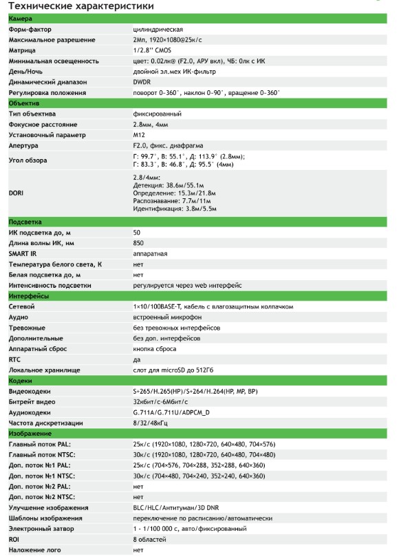 Максимальное разрешение: 2МП(1920×1080)