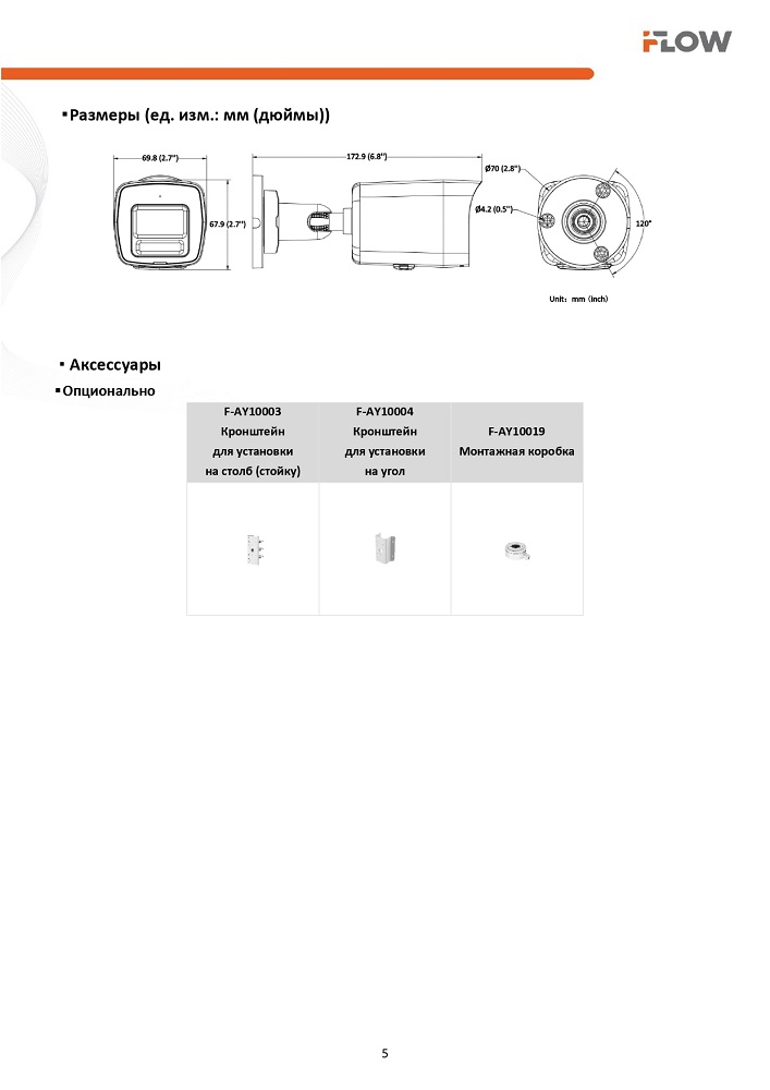F-IC-1146CM(2.8mm) 4Мп уличная цилиндрическая IP-камера с гибридной Smart-подсветкой до 30м и технологией BrightVu iFlow; 1/3'' Progressive Scan CMOS матрица; 2560 × 1440@20к/с; объектив 2.8мм; угол обзора 115°; 0.001Лк@F1.0; H.265/H.265+/H.264/H.264+/MJPEG, HLC, коридорный режим, WDR 120дБ; 3D DNR; BLC; ИК-подсветка 30м; встроенный микрофон; microSD 512Гб; IP67; PoE; TVS, -40°C до +60°C.