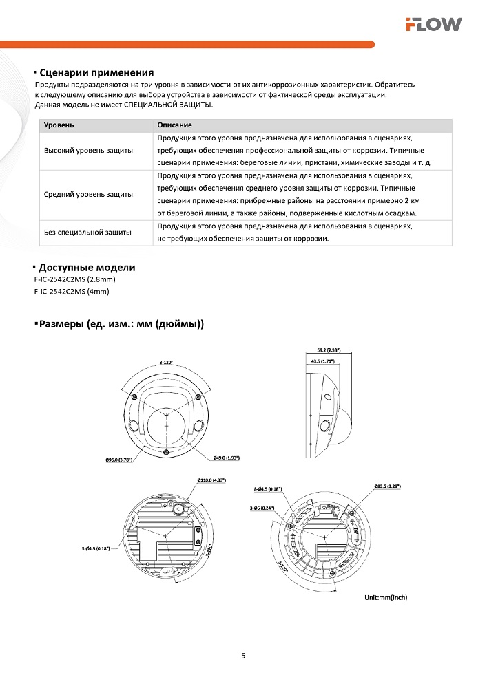 IP-камера F-IC-2542C2MS является 4 Мп купольной мини IP-камерой с фиксированным объективом, двумя подсветками и технологией SharpSense