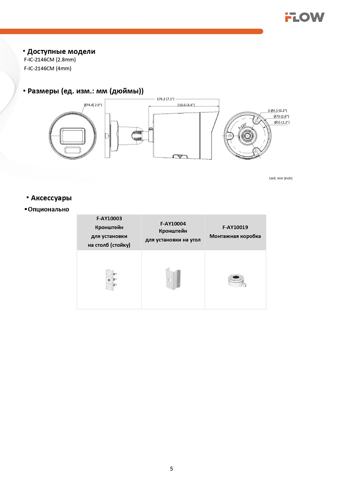 IP-камера F-IC-2146CM является 4 Мп цилиндрической мини IP-камерой с фиксированным объективом, двумя подсветками и технологией BrightVu