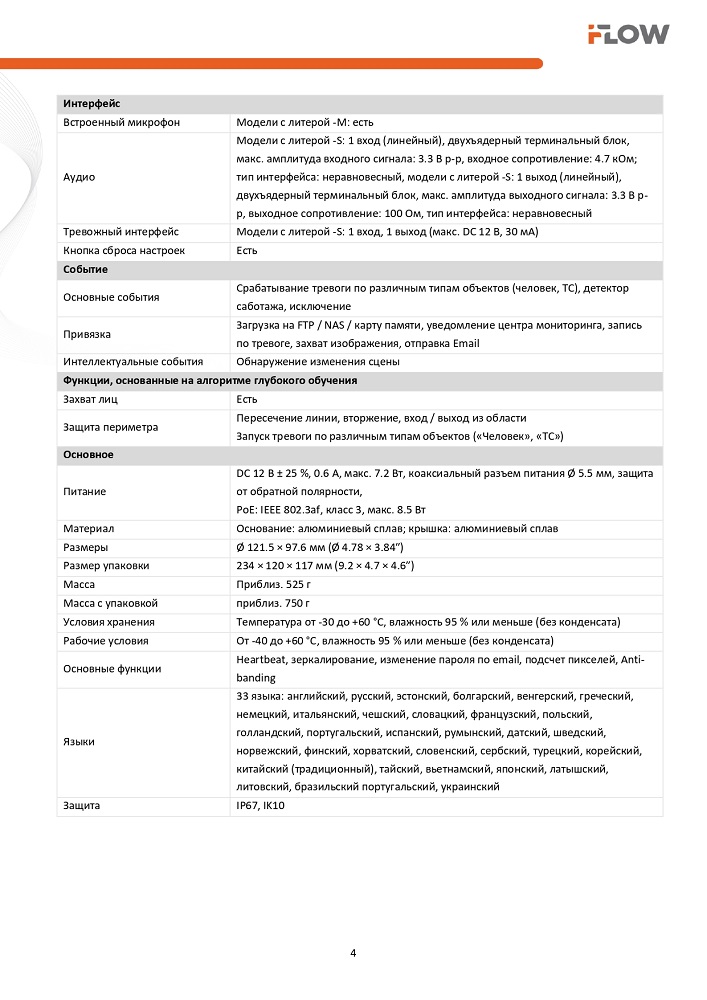 F-IC-2446CMS(4mm) 4Мп уличная куполная IP-камера с гибридной Smart подсветкой до 30м, технологией BrightVu и SharpSense iFlow; 1/1.8"" Progressive Scan CMOS; объектив 4мм; угол обзора 89,2°; механический ИК-фильтр; 0.0005лк@F1.0; сжатие H.265/H.264/MJPEG/H.265+/H.264+; 2688 × 1520@25к/с; ИК-подсветка 30м; WDR 130дБ, 3D DNR, BLC, HLC, ROI; microSD до 512Гб; встроенный микрофон; аудиовход/выход 1/1; трев. вход/выход 1/1; TVS, 1 RJ45 10M/100M Ethernet; Pое; -40 °C...+60 °C; IK10, IP67; вес 0.53кг.