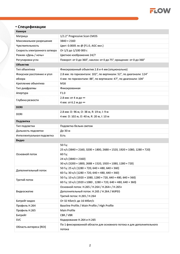 F-IC-2384CM(2.8mm) 8Мп уличная IP-камера с Smart подсветкой до 30м, технологией BrightVu и SharpSense iFlow; 1/1.2"" Progressive Scan CMOS; объектив 2.8мм; угол обзора 102°; 0.0005лк@F1.0; сжатие H.265/H.264/MJPEG/H.265+/H.264+; тройной поток; 3840 × 2160@25к/с; LED-подсветка до 30м; WDR 130дБ, 3D DNR, BLC, HLC, ROI; microSD до 512Гб; встроенный микрофон; TVS, 1 RJ45 10M/100M Ethernet; PoE; -40 °C...+60 °C; IP67; вес 0.87кг.