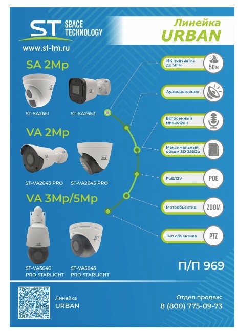 ST-SA2651 URBAN 2Мп (2,8мм) (версия 2) IP-видеокамера уличная Space Technology; 1/2.8" Progressive Scan CMOS; 1920х1080 - 25 к/с; H.264/H.265; объектив 2.8 мм; ИК подсветка 30 м; 0.02 лк; встроенный микрофон; HLC, BLC, DWDR, AGC, MGC,/3D-DNR/AWB/MWB/Антитуман; ONVIF S/T, P2P; детектор движения, аудио детекция, 12В DC/PoE; 3.5Вт; IP67; -30...+60°C; 0,385 кг.
