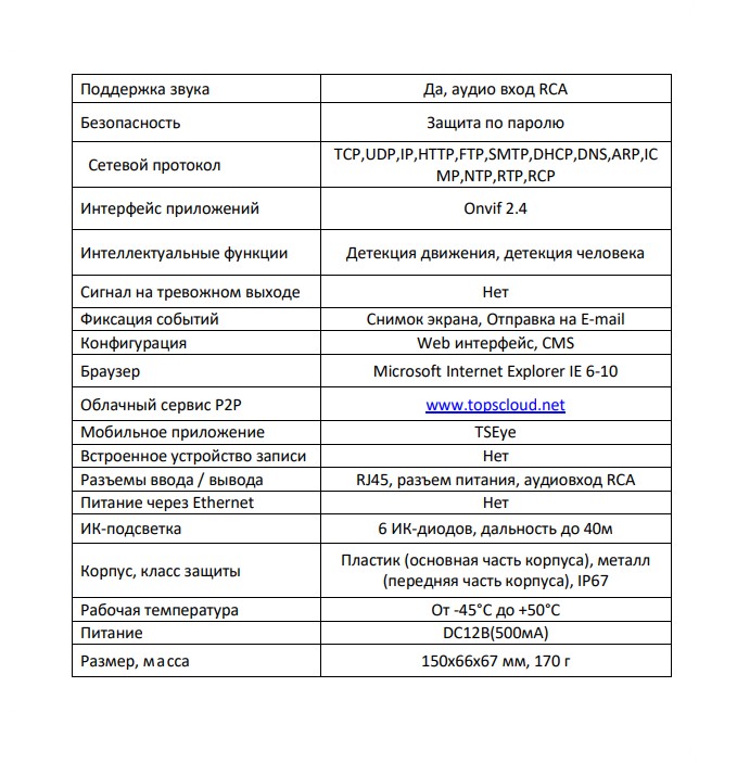 Чувствительность: Цв. 0.01Лк (F1.2), ч/б 0.001 Лк (F1.2), 0 Лк при вкл. ИК