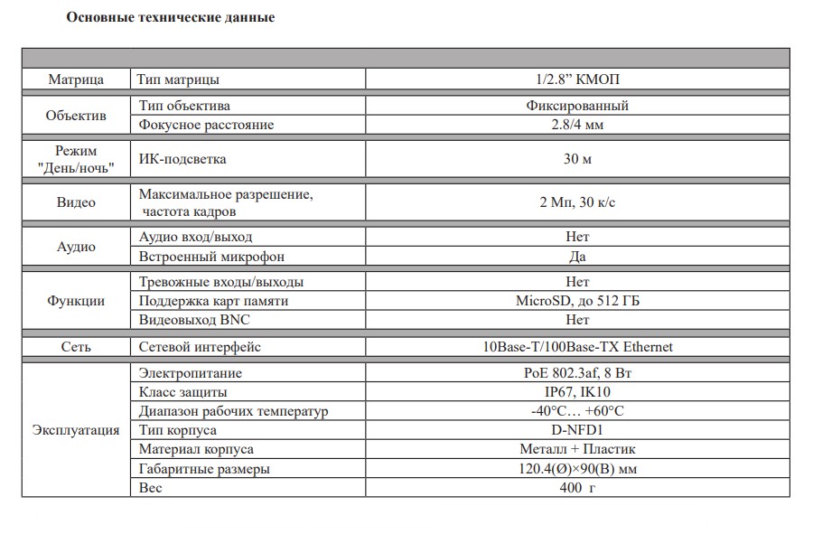 Сенсор: 1/2.8”, 0.002 лк @ F1.6