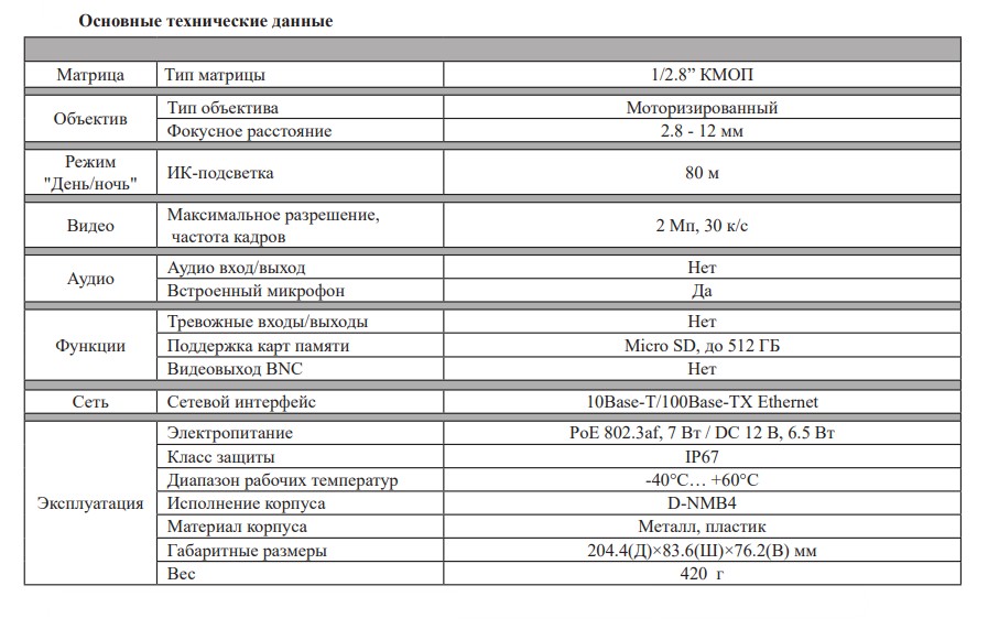Сенсор: 1/2.8”, 0.02 лк @ F1.6