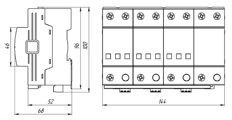 Моноблочный корпус для подключения к сети и креплению к DIN-рейке 35 мм.