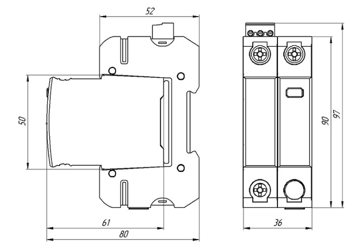 Состоит из сменных варисторного модуля, модуля с разрядником и базы для подключения к сети и креплению к DIN-рейке 35 мм.