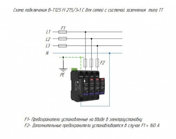 Уcтройство В-T12.5 М 275/3+1 С, ТУ 3428-002-79740390-2007 по способности выдерживать токовые нагрузки соответствует УЗИП класса испытаний I, согласно ГОСТ IEC 61643-11, а по ограничению переходных напряжений допустимых для оборудования Up – УЗИП класса испытаний II. Устанавливается в пределах 0А(В) - 1 зон молниезащиты (в соответствии с ГОСТ Р МЭК 62305-1 и СО-153-34.21.122). Предназначено для защиты оборудования в низковольтных силовых распределительных системах до 1000 В при воздушном или кабельном вводе электропитания.