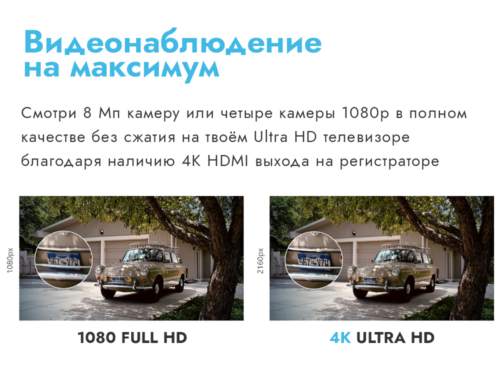 Запись всех каналов в реальном времени до 4K (8 Мп)