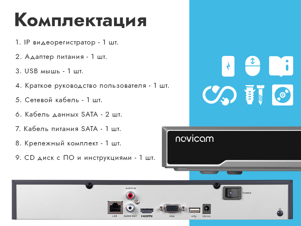 1. IP видеорегистратор - 1 шт.