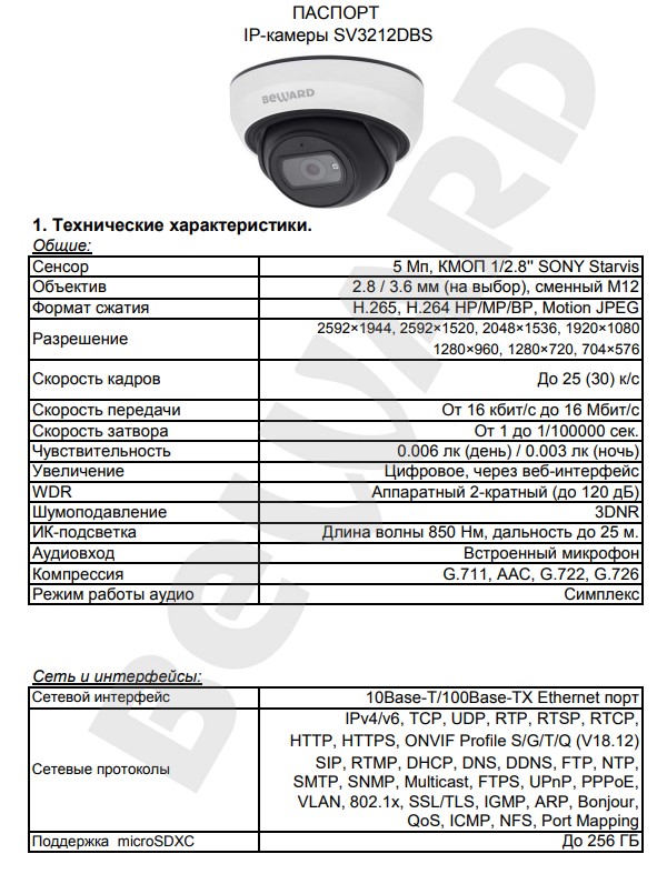 Поддерживаемые видеокодеки: H.264/H.265/H.265+