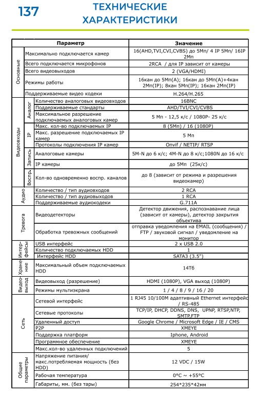 Максимально подключается камер: 16(AHD,TVI,CVI,CVBS) до 5Mp/ 4 IP 5Mp/ 16IP 2Mp