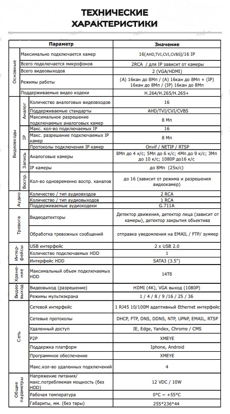 Максимально подключается камер: 16(AHD,TVI,CVI,CVBS)/16 IP