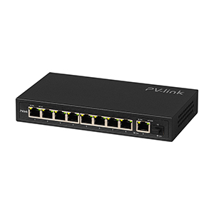 PV-GPOE08G1S1 (ver.2125) 10 портовый коммутатор PV-Link; 10/100/1000 Мбит/с с 8 портами РоЕ; IEEE 802.3af/at; 110 Вт; 100 - 240 В, 50/60 Гц; грозозащита 4 кВ; 1 LAN порт 1 Гбит/с, 1 SFP порт 1 Гбит/с; металлический корпус; -20...+55°C; 191x105x29 мм.