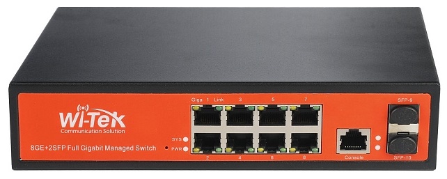 WI-PMS310GF управляемый гигабитный L2 коммутатор с функцией PoE; 8 портов 10/100/1000Mbps RJ45; (Auto Negotiation/Auto MDI/MDIX; 2 SFP-слота 1000Mbps; 1 консольный порт; -10℃~55℃; 210х140х45 мм.
