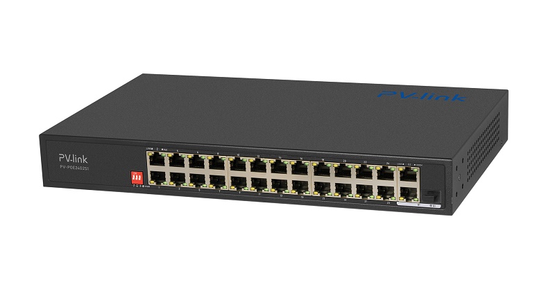 PV-link PV-POE24G2S1 это 24 портовый коммутатор 10/100/1000 Мбит/с с 24 портами PoE, с гигабитными up-link портами RJ45 и 1 SFP портами производства компании PV-link. Предназначен для удаленного питания и объединения потоков данных с IP устройств.