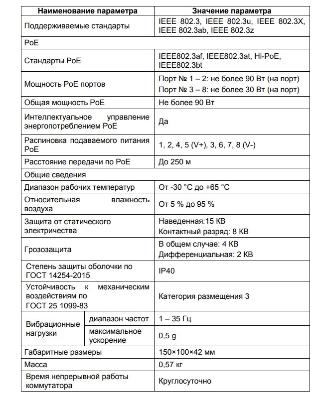 Мощность PoE портов: Порт №1-2 не более 90 Вт (на порт); порт № 3-8 не более 30 Вт (на порт)