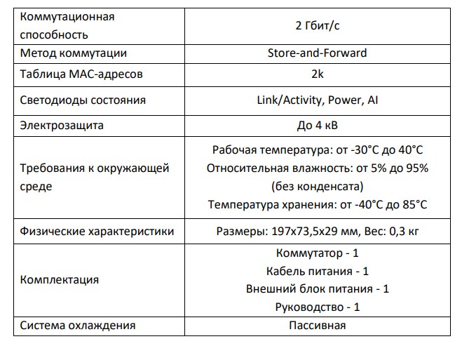 Комплект поставки: Коммутатор - 1, Кабель питания - 1, Внешний блок питания - 1, Руководство - 1