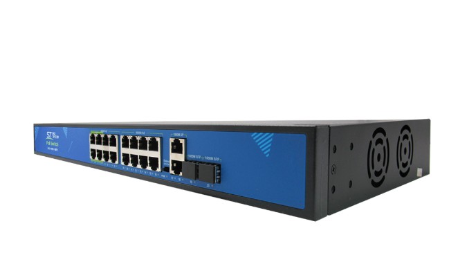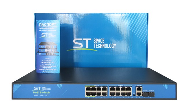 ST-S166POE (16G/2G/2S/300W/АB/4BT) PRO сетевой PoE коммутатор Space Technology; PoE порты 16 х (10/100/1000 Мбит/с), UpLink порты: 2 х (10/100/1000 Мбит/с), SFP порты: 2 х (10/100/1000 Мбит/с); 1000 Мбит/канал; Uвых: 48 (±10%); Р(ном) каждый порт (Вт): 1-4 порты 60Вт; 5-16 порты 19Вт; Р(макс) каждый порт (Вт): 1-4 порты 90Вт, 5-16 порты 30Вт; Р(сумм) общая (Вт): 300 Вт; От -45°C до +55°C; 310х183x45 мм.