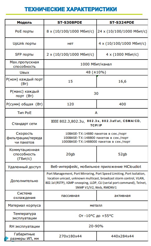 Источник питания ST-S324POE(24G/4G/4S/1C/400W/A) PRO M, преобразователи статические предназначены для обеспечения проводных сетей напряжением 48 Вольт, Стандарты PoE: IEEE 802.3af/at, AI QoS, AI VLAN, Грозозащита, PoE порты: 24 х (10/100/1000 Мбит/с), UpLink порты: 4 х (10/100/1000 Мбит/с), SFP порты: 4 х (1000 Мбит/с), Max.пропускная сп-ть: 1000 Мбит/канал, Uвых: 48 (±10%), Р(ном) каждый порт (Вт): 16,6 Вт, Р(макс) каждый порт (Вт): 30 Вт, Р(сумм) общая (Вт): 400 Вт, Тип РоЕ: A, Коммутационная способность (Гбит/с): 52gb, Port Management, Port Mirroring, Port Speed Limiting, Port Isolation, location unicast, unknown multicast, broadcast storm control, VLAN, 802.1d (RSTP), IGMP-snooping, LLDP, CLI (serial port command), Telnet, SNMP V1/V2, Web, RMONV1, Система охлаждения: активная, Активное POE Управляемые коммутаторы: Да, Металл, Температура эксплуатации: От -10°C до +55°C, Габариты изделия, мм.: 440х284х44