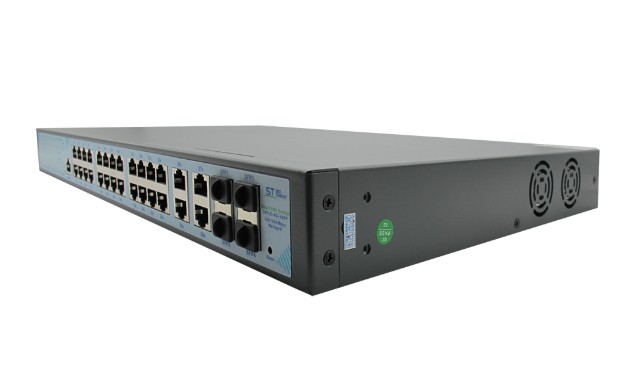 ST-S324POE(24G/4G/4S/1C/400W/A) PRO M сетевой PoE коммутатор Space Technology; 24 х (10/100/1000 Мбит/с), UpLink порты: 4 х (10/100/1000 Мбит/с), SFP порты: 4 х (1000 Мбит/с); 1000 Мбит/канал; Uвых 48 (±10%); Р(ном) каждый порт (Вт) 16,6 Вт; Р(макс) каждый порт (Вт) 30 Вт; Р(сумм) общая (Вт) 400 Вт; металл; от -10°C до +55°C; 440х284х44 мм.